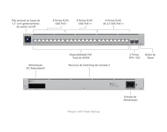 Consumo Máximo de Energia: 50W (Excluindo Saída PoE) 450W (Incluindo Saída PoE)